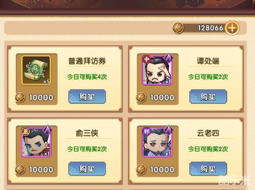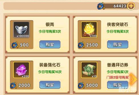 门派商店算是稳定获取资源的地方了,每天定期换取拜访就可以了,等到有高抽活动的时候可以换几张高抽,门派6级之后可以换取升星石。