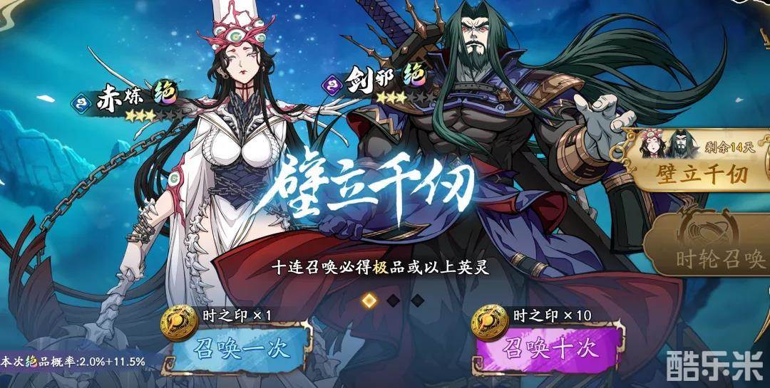 限定召唤「壁立千仞」开启,绝品英灵赤炼&绝品英灵剑邪召唤概率提升