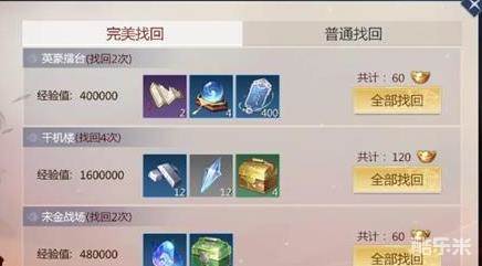 【奖励找回】:在福利界面参与,如果前一天的部分活动未参加的话可以通过系统的【奖励找回】功能对活动经验道具进行找回。但是花钱,要么花元宝,要么花银两。元宝找回的奖励跟丰厚。