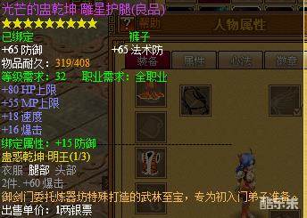 挂机升级的装备,我建议有两套,第一个是良品银丝蟒纹系列装备,只需要准备中皮即可,总消耗大概10锭银票以内,成本极低,满星满铭刻之后属性不错,我小号前期打的都是这种装备,个人经验足够应付未转的挂机升级要求,除了血量外,双防可以到1000以上。(因为在老区有大号带,所以小号直接穿着30级装备转生,120级打120套装)