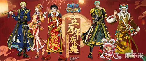 2020年1月28日《航海王 启航》迎来5周年庆典,首次曝光与日本东映动画定制的原创中国风草帽一伙皮肤,推出限量1~5周年纪念币、卡套等特色周边,以及特大福利放送活动。