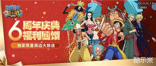 2021年1月《航海王 启航》六周年庆典福利来临,为3V3跨服竞技玩法-海上争霸赛全服第1-35赛季的冠军队伍每人送出一个《航海王