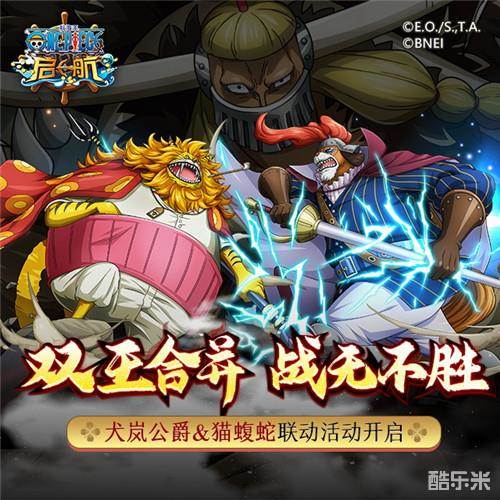 2021年8月26日,《航海王 启航》迎来新世界2周年版本,史上首次推出联袂新角色——猫蝮蛇、犬岚公爵。来自佐乌的两位纯毛族国王一人保卫白昼,一人守护黑夜,以所向披靡之势横扫大海,携手开启双王统治时期。