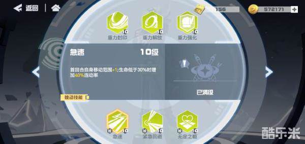 增加移动范围,生命低于一定百分比时提高连动率。
