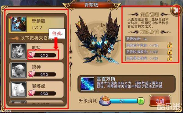 主线剧情到达青鳞鹰那一关,打完青鳞鹰句型boss后,就获得了青鳞鹰的使用权。点击主界面右下角的灵兽按钮