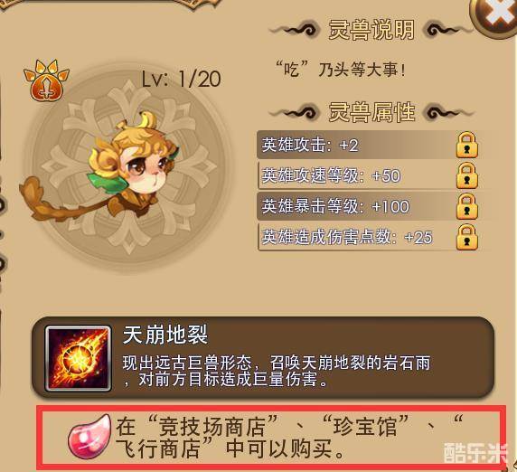 想获得灵兽,就是去收集兽魂了,不同灵兽的获得方式不一样哦。看下图的红色框的位置显示着,灵兽兽魂获得的具体方式。