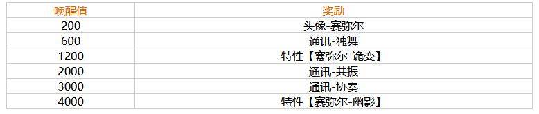 唤醒奖励: (达到一定的唤醒值即可解锁奖励)