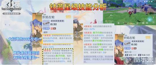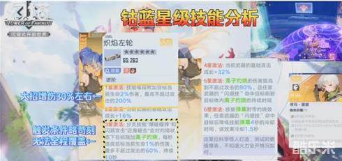 钴蓝一星技能最多可增加大招伤害200%攻击力的伤害,也就是大招增伤三分之一左右,虽然强化了输出能力但是仅仅一星的话这个提升并不算大,因为钴蓝的大招冷却时间有60秒。2星和4星技能都是常规的这里就不详细说了。