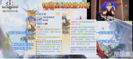 再就是最重点的五星技能了,五星技能不仅强化了钴蓝的三星技能而且钴蓝也成功进化为了后台武器,炽焰左轮只需要灼烧后释放一次闪避技能或者分支技能既可以不再出场,靠其他武器的闪避技能就可以给这个灼烧效果一直巡航,每秒造成伤害的90%,还是很可观的。