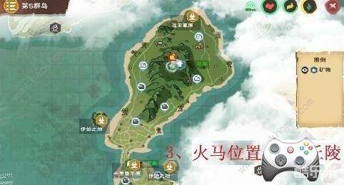 火马位置,盛宴丘陵(霸王龙坑)有1只,火山有3只