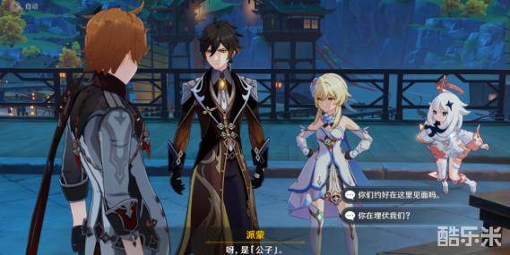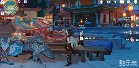 2、跟着任务追踪前往玩具摊,找摊主阿山婆购买风筝(对话中派蒙倒是直接接上了阿山婆的话,在剧情中钟离取货的时候发现没带钱,公子及时出现解救,但是被怀疑在跟踪);