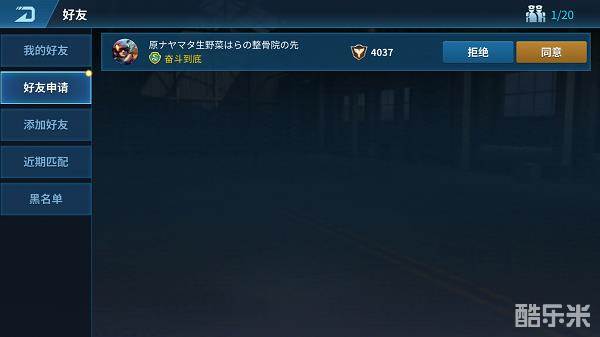 2.好友申请:显示其他玩家的好友申请,玩家可以选择接受或拒绝申请;