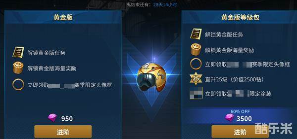 玩家可购买普通黄金版,也可消耗更多钻石购买黄金版等级包,后者可以直升25级,并可获得限定涂装。