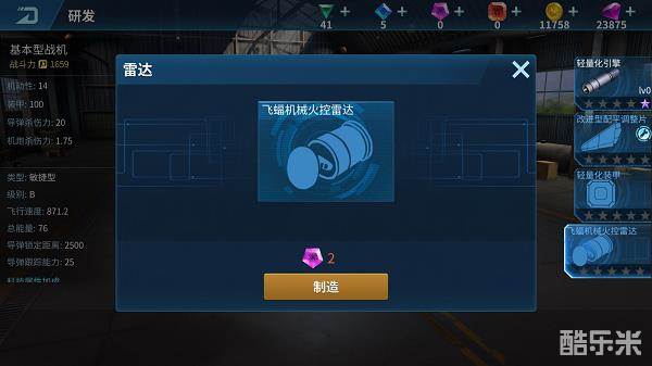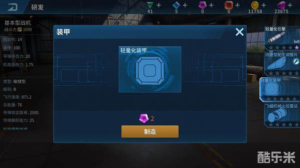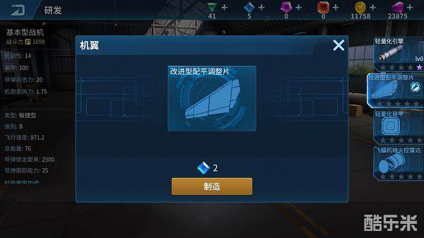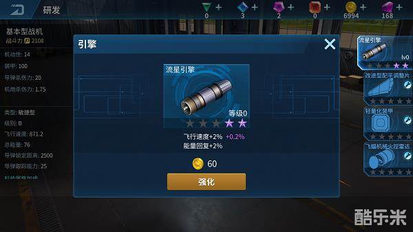 飞机属性提升可在研发界面升级飞机装备与科技。