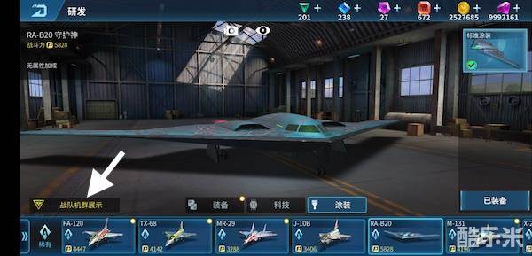 3)战队机群界面显示战队玩家设置的展示飞机与飞机涂装,玩家在研发-涂装界面可以选择需要展示的飞机和涂装,勾选战队机群展示即可在你的战队机群中“秀”出你的飞机。