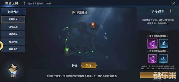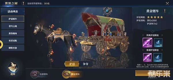 ◆接受委托,在世界之树战场护送黄金镖车,安全抵达终点即可完成护送