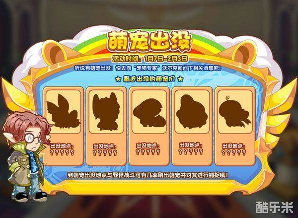1、获得解锁信息次数,可解锁萌宠出没相关信息