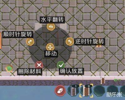 6、【门】和【其他】分类下的材料,在地皮中点击后会出现控制按钮,可以通过翻转、旋转、移动能功能来控制材料位置。