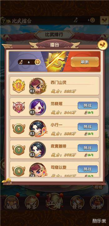 这个阵型基本只要几次就能过关,一路推到700多层开始速度跟不上了,对面的速度快过姑姑了(姑姑是红二)。于是姑姑升红三,郭靖还是红二,把姑姑原来带速度词条的武学换给郭靖,继续速推到820层。这时对面的速度快过郭靖了,勉强推到859层推不动了。明天升郭靖到红三找回先手优势了,应该又能顺利爬塔了。