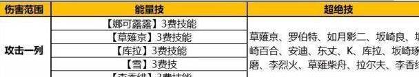 目前暂时只有【橘右京】、【娜可露露】的超绝技拥有这个范围,既能快速击杀小怪,也能集中火力攻击boss,适用于不同的敌人和阵形,值得推荐。