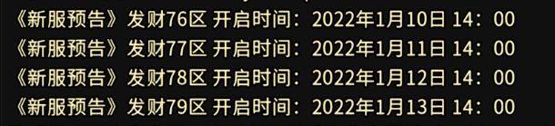 《新服预告》发财76区 开启时间:2022年1月10日14:00
