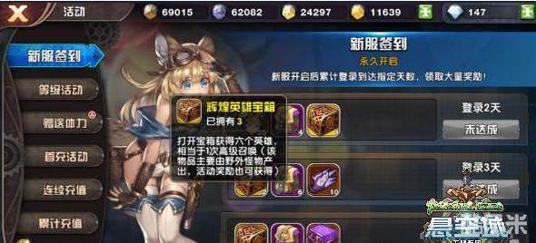 对于游戏内的平民玩家,英雄召唤确实比较氪金,这时参加新服活动获取英雄宝箱成了不错的选择。游戏内的辉煌英雄宝箱相当于一次高级召唤令,同时还省去了点击六次的麻烦,打开英雄宝箱便有机率获取金色英雄,目前玩家可以通过击杀野怪和新服签到活动来获得宝箱。只要指挥官们平时多多参加活动,金色英雄不是梦呦!