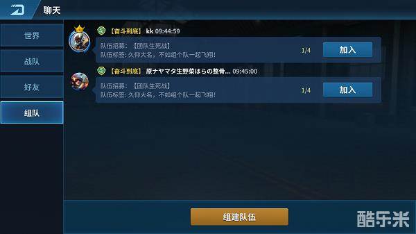 还有一种方法,主界面点击“升空作战”--”组队模式”,选择好房间模式、人数后,选择发送组队信息至组队频道,这样其他玩家就能在聊天界面的组队频道看到你发送的房间请求信息了。当你解散房间后,组队频道的房间信息也将被清除。