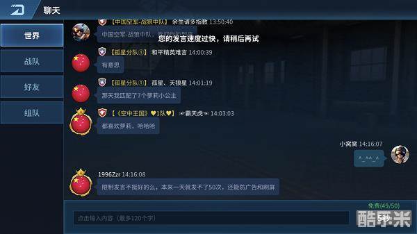 世界频道的发言间隔时间为10秒,需要我们控制一下自己的语速,毕竟每一条世界频道发言都比较珍贵的啦。单次发送文字的上限为120个字。聊天记录显示最近的100条,每次登录游戏可以看到最新的世界聊天记录,保证不让玩家错过每一个精彩的动态。