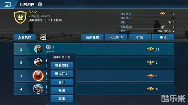 在战队成员界面,可以点击队友的头像,在弹出的气泡框中,点击查看资料,可以查看队友的详细资料,大神数据一目了然!点击添加好友,同意后便可成为好友私聊及邀请一起游戏了。