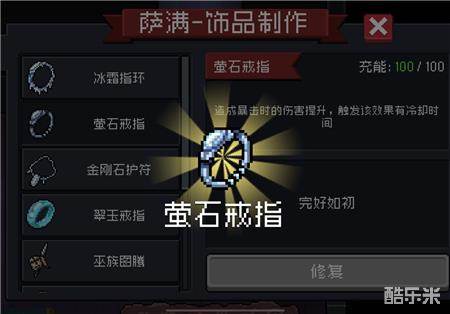 萤石戒指效果为增加50%暴击伤害,若有小数点则向下取整