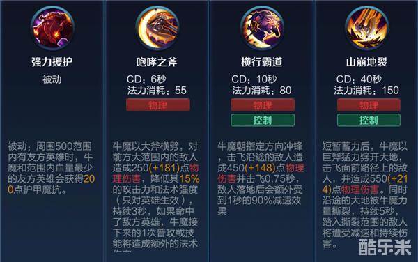 最大生命、物理及法术防御的加成,旨在提高牛魔的生存能力,使他能更好地保护队友。攻速的加成,则使他能打出更多控制、输出。