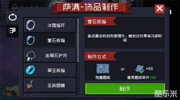 2、得到99个通用碎片就可以前往魔法区域找到萨满,并且在萨满处制作饰品