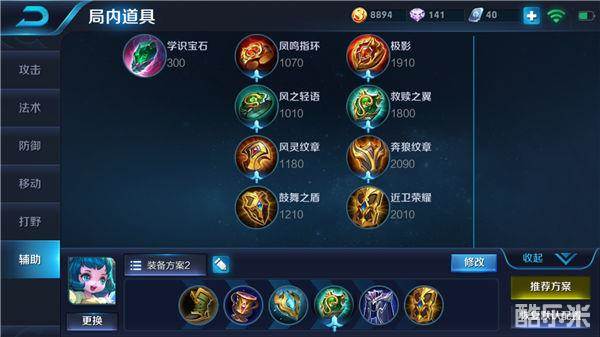 解析:影忍之足保证她前期的抗压能力,让她对线时更容易获取对战优势,而且即便敌军打野前来GNAK,也能掩护队友安全撤离;圣杯是她的核心装备,可以增加法术攻击和冷却缩减,让她回复能力更强,同时保证了她的蓝量,增强了她的持续作战能力。