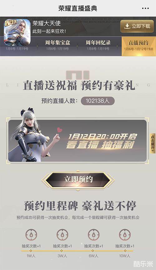 今夜狂欢开启,全服瓜分一亿钻石红包雨。《荣耀大天使》荣耀狂欢盛典直播今晚20:00点隆重开启!锁定游戏内专题(进入游戏内点击专题观看直播)抽年度锦鲤享全年12个月648元、1折大天使武器自选箱等豪华福利,众多精彩环节先睹为快!