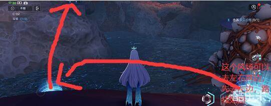 1、我们进入以后要朝前走然后就可以看到一个蓝色的风场,要是没有看到就需要转动一下这个石像,转成蓝色就能看到了;