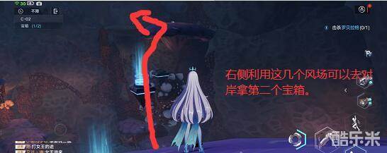 5、然后我们还可以看到一个风场,我们可以先去右边的对岸,在这边就可以看到一个宝箱。