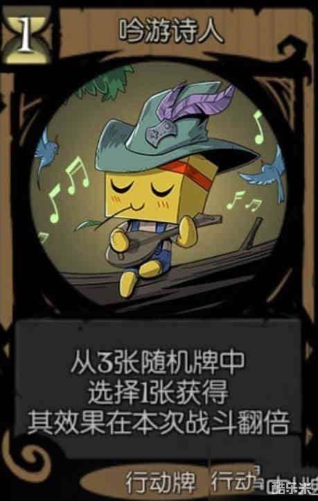 事实上小编是不建议大家选这张卡的,因为选择吟游诗人就意味着放弃了选择一个祝福的机会。而祝福,哪怕是普通祝福,有多强力相信月圆之夜的玩家们都明白,更何况和对于行动力不足的小伙伴们来说会卡手的1费行动卡来说,各式各样的祝福是一个进可组成核心退可锦上添花的选项。且吟游诗人事件出在游戏后期,这时候卡组往往已经成型,随机牌提供的帮助也并不稳定。