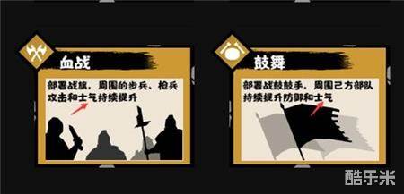 1、作战时妙用部分卡牌(如”血战”和”鼓舞”)可以有效提高士气,给自己加满满的buff,在战斗中轻松制敌,傲视群雄。