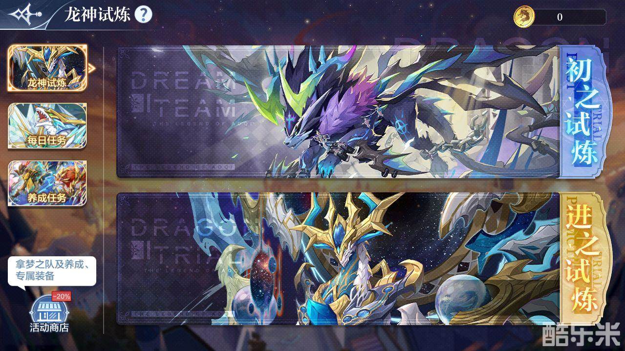 1. 龙神试炼分为初之试炼、进之试炼2种挑战。