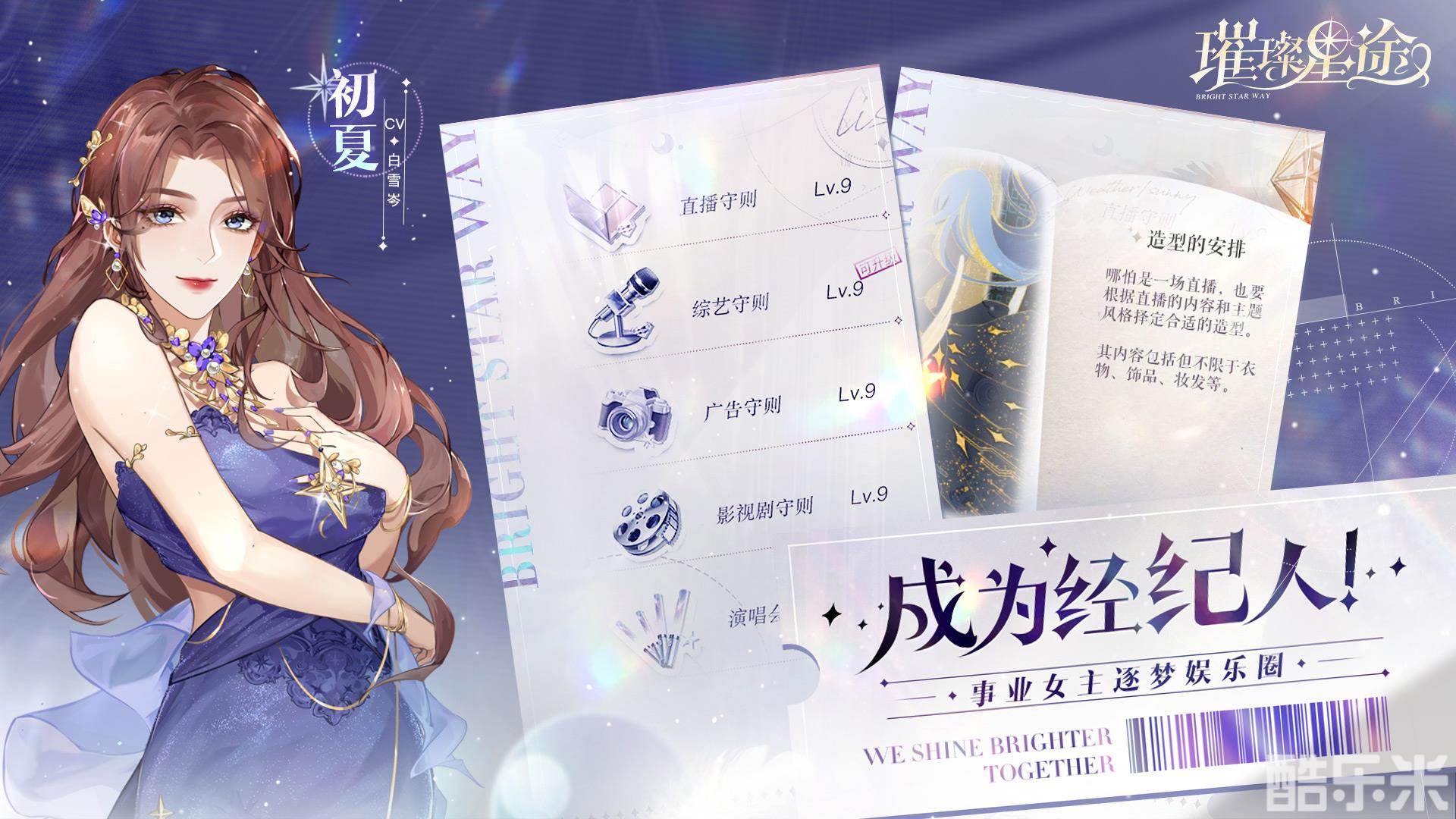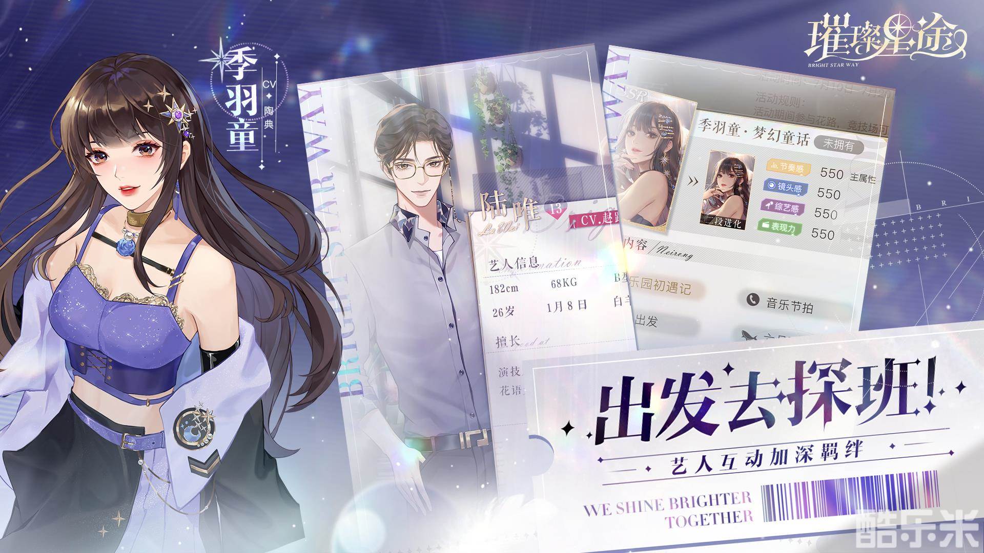 最后编辑于3年前娱乐圈经纪人成长手游《璀璨星途》今日闪耀公测!星星本不会发光,星光皆因你而璀璨。《璀璨星途》是一款娱乐圈经纪人成长手游,由边江、白雪岑、姜广涛、苏尚卿、陶典、赵路、吴磊等豪华声优阵容为7位个性角色配音,全剧情全角色配音植入,营造高沉浸听觉盛宴。