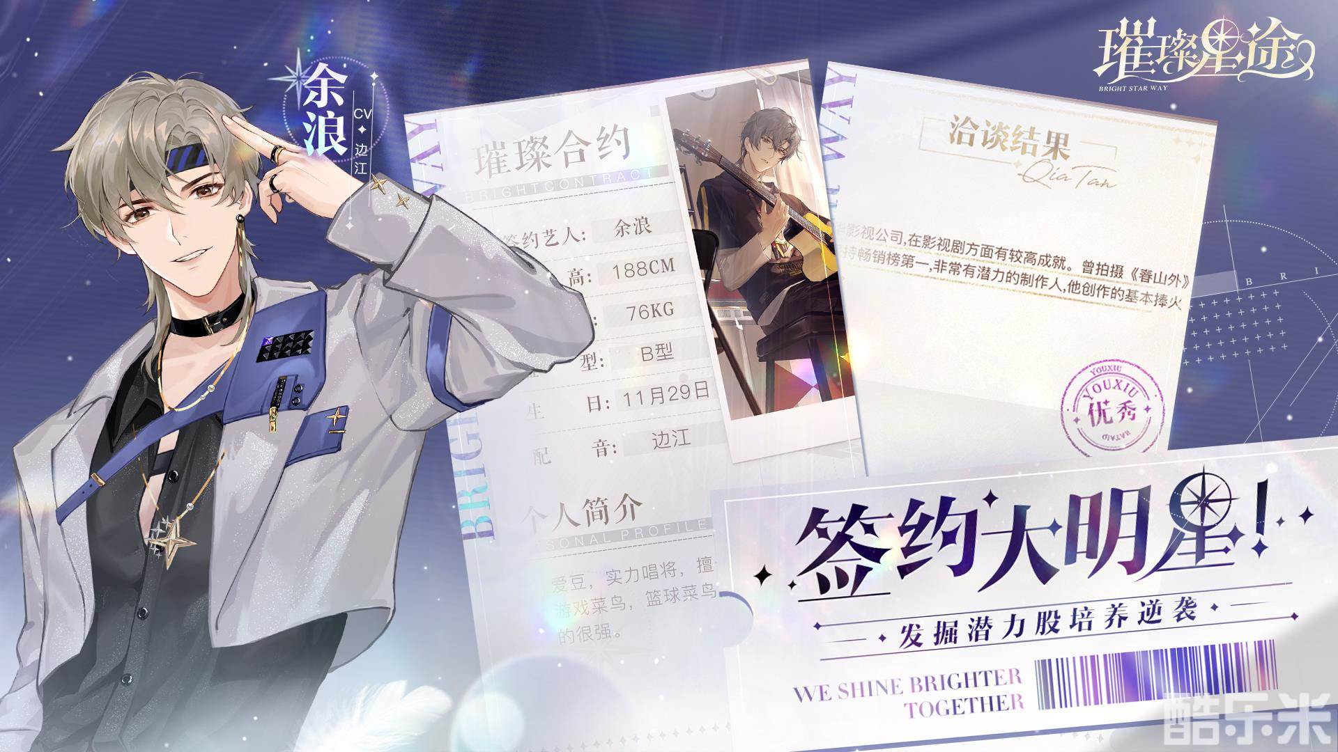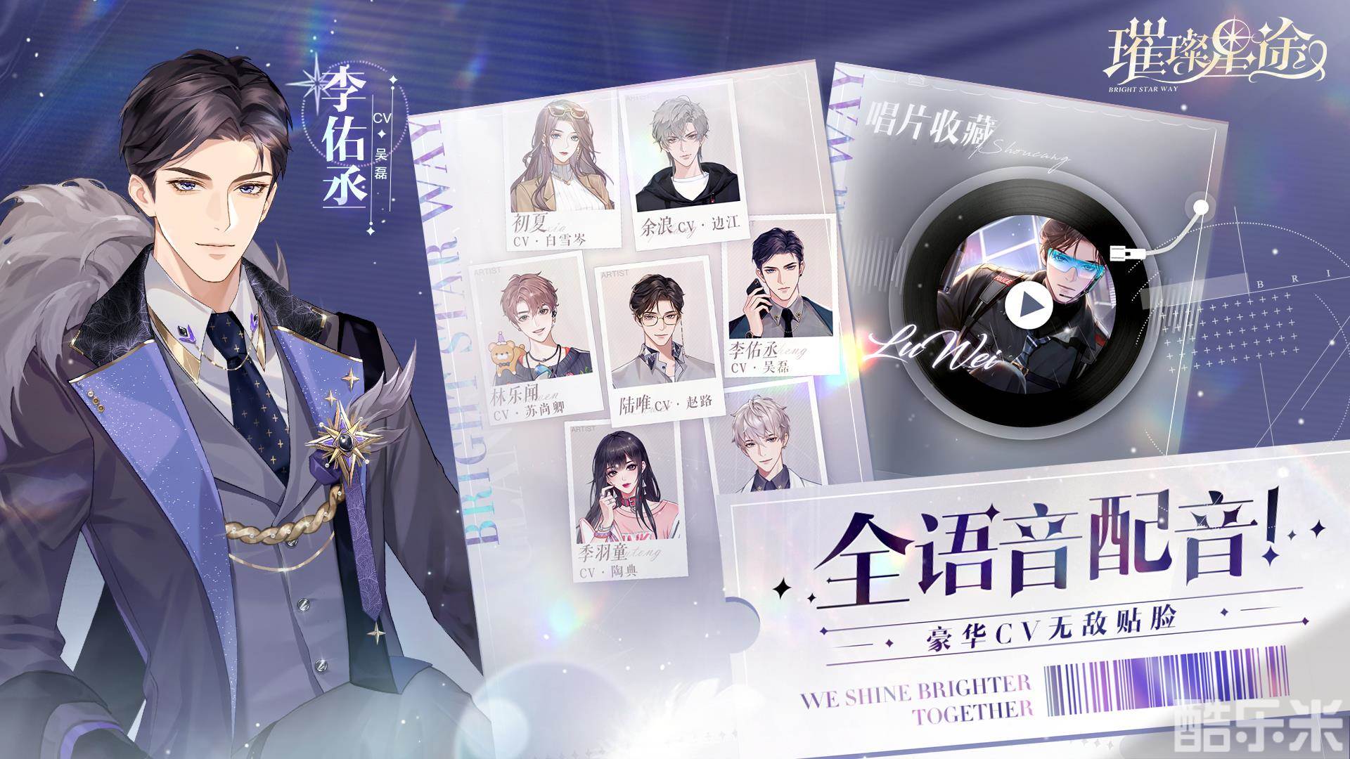 边江、白雪岑、姜广涛、苏尚卿、陶典、赵路、吴磊,熟悉而又豪华的声优阵容再次登场!作为娱乐圈养成游戏,在剧情语音全覆盖外,我们还特别邀请声优们倾情献唱,为每一个角色录制专属主题曲!比如,余浪设定是Rapper,作为配音的边江老师就会激情献唱Rap,是谁狠狠地期待了?闭上眼睛用心聆听,感受这场星河下的浪漫人生吧!