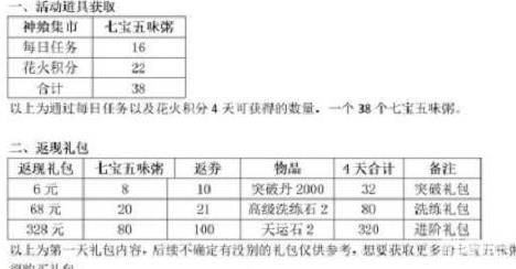 7、五档每多买一个328礼包多80个七宝五味粥,可以在前四档的基础上自选,搭配方式较多就不进行赘述,大佬随意。