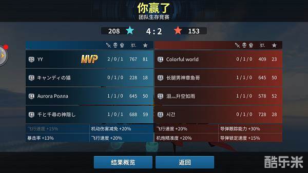 双方在战斗中,击杀、助攻、造成伤害均能获得积分,如果在加时赛结束时双方依然有飞机存活,则看双方的积分来判定胜负。