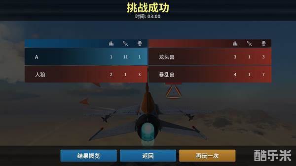 混战模式游戏时间限时3分钟,总共四架飞机混战,均无限复活,各自为阵。玩家驾驶一架飞机,需要在3分钟内获得击杀排名第一,取得胜利。首次达成星级目标还将获得额外奖励。重复通关可获得经验、金币。