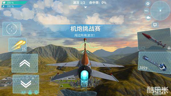 机炮挑战赛模式下游戏时间不限时,玩家操作界面上没有导弹按钮,只能使用机炮作为对敌机的唯一伤害武器。同时界面上还会显示机炮命中率数值,我们可以实时了解当前自己的机炮命中率。该模式有多个波次敌机,击败当前波次所有敌机则会进入下一波次。