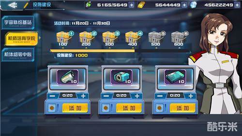 设施建设(1月14日~1月30日)——玩家通过参与活动获得道具建设宇宙补给基站、机师培育学院、机体组装中心,达到一定积分进度便可获得动力能源、能量储存器、高级战斗数据等奖励。