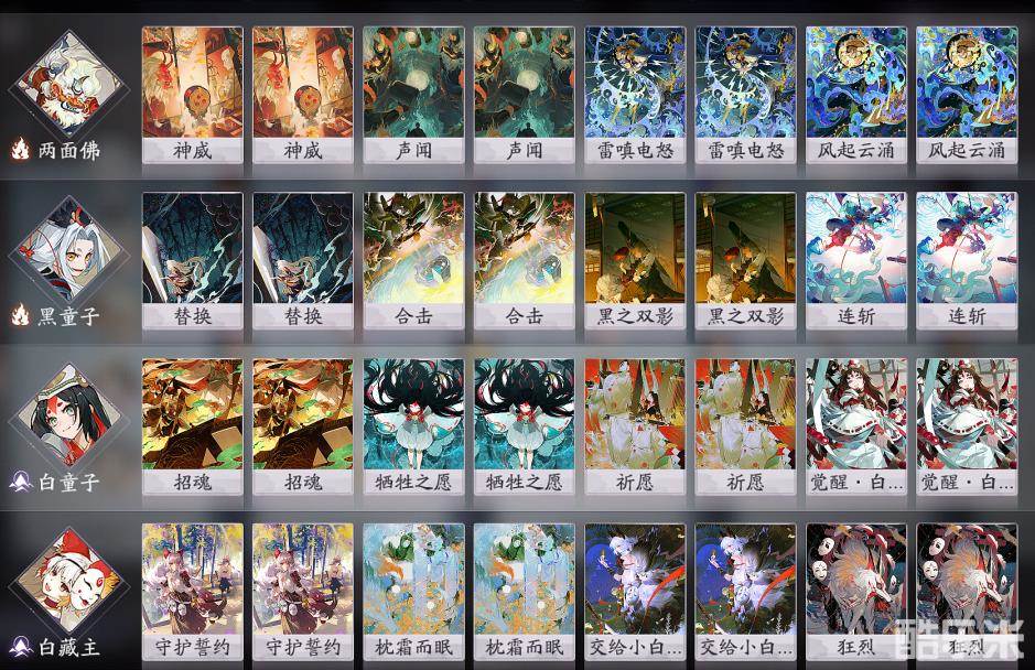 1.这是一套由白童子、黑童子、两面佛、白藏主组成的卡组。在卡组构筑中,黑童子与白童子的卡牌携带可以根据个人想要的效果,进行调整。在黑童子的百闻小课堂中,也有对携带两面佛的这套阵容进行详细说明,这也是当前较为常见的黑童子与白童子的卡组构筑。