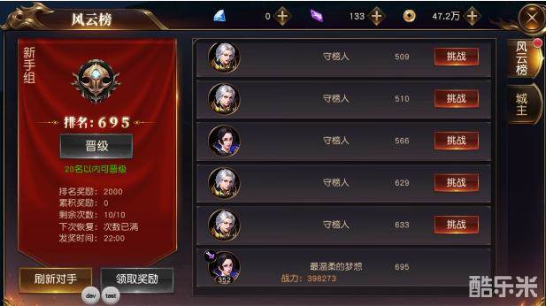 当你在游戏中战力不断提升的同时,还可以参与大荒榜天梯排位赛,小伙伴需要挑战在大荒榜上的守榜人证明自己的实力,目标是尽可能的提升自己的排名,排名越高每日获得的排名奖励就越多。