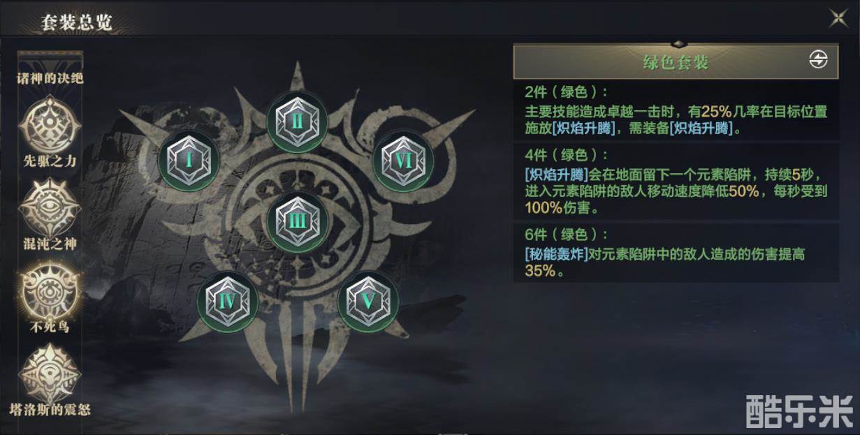 这套铭文主要对【炽焰升腾】和【秘能轰炸】的技能组进行强化。勇士们在装备这两个技能后,选用这套铭文可以在所选择的主要技能造成“卓越一击”时在原地瞬发【赤焰升腾】,并在原地留下减速陷阱提高法师对目标的控制力。