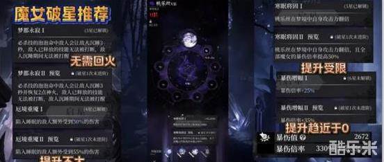 五星的梦境中全体魔女暴伤加50%,这个提升可以说很大但是因为暴伤的倍率限制350%,提升直接拉小;六星的暴伤增加10%提升,虽然很多但是暴伤已经严重溢出了,25%暴伤就已经溢出了,35%暴伤不是零提升嘛?小编始终不能理解暴伤倍率为什么要设上限,因为星图这个上限更加的不合理了!!